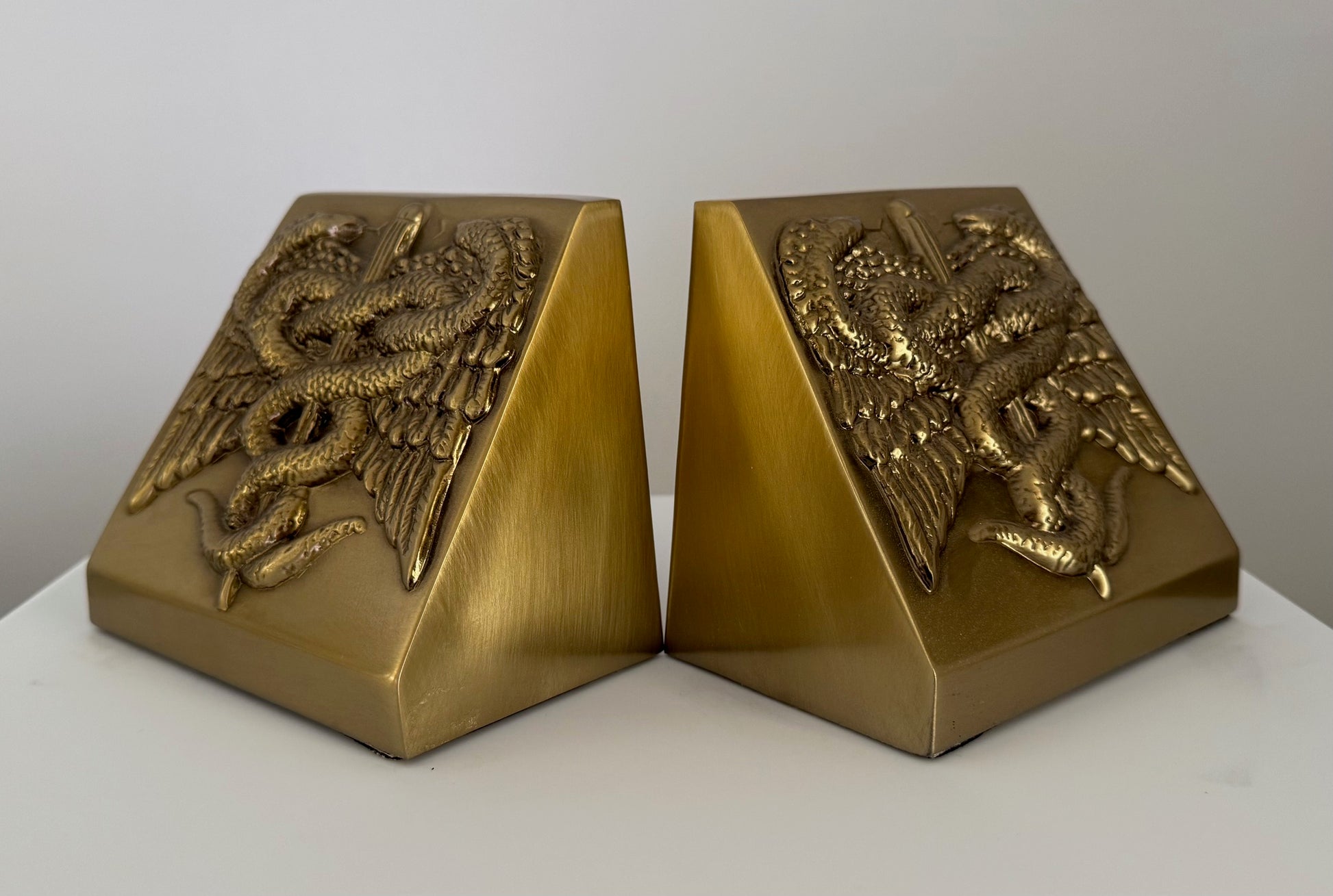 4 1/4" Caduceus Brass Bookends by PM Craftsman