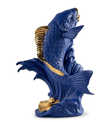"A new addition to the Boldblue collection, featuring a koi, a highly appreciated decorative fish and a symbol of good luck, patience and long life. Notable for its movement and the energy it conveys, this piece has an extraordinary decorative quality thanks to its original decoration, inspired by Klein Blue, the color patented by the famous contemporary artist Yves Klein, further enhanced by a contrast with golden elements. Made in matte porcelain and decorate in intense satin-finish blue with details in gold."